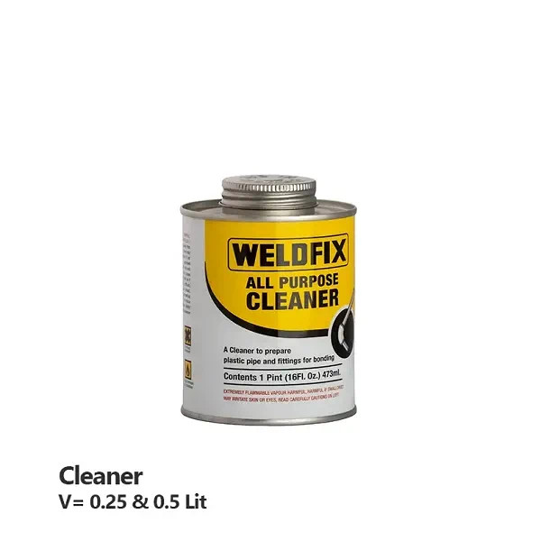 نوعی کلینر لوله و اتصالات پی وی سی می باشد که دارای کیفیت بسیار بالا و قیمت مناسب می باشد. از کلینر ولد فیکس می توان جهت پاک کنندگی انواع لوله و اتصالات PVC – UPVC – PVC_u و لوله پلیکا استفاده کرد.